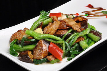 小菜:时间到起锅,用锅里的鸡汁来炒菜心,除了油,什么材料都别加了,真是好鲜。