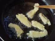 6 锅置火上倒入油,烧至八成热,逐个投入里脊条。
