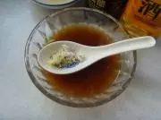 4 碗中放料酒、糖、醋、盐、葱姜末、水淀粉、少许汤兑成味汁。