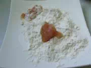 4 肉均匀的沾一层粉,用手拍打掉多余的面粉,全部沾好备用。