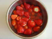 2 草莓、小番茄放入淡盐水中浸泡10分钟,去蒂清洗干净。