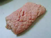 2 猪里脊一面斜切花刀,切好翻面再切一遍。然后切成一口大小的肉块。