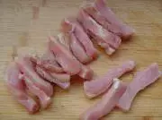 1 将洗好的里脊肉用刀切成长宽相等的里脊条。