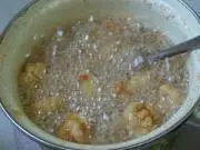 5 油烧八成热,下肉团炸微黄,捞出来,继续烧油,再下入一次。