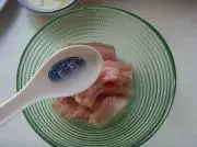 2 里脊放入碗中加入鸡蛋清液、水淀粉、料酒各适量抓匀。