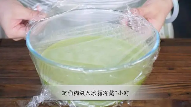 5. 将面糊过筛,盖上保鲜膜放入冰箱冷藏至少一小时