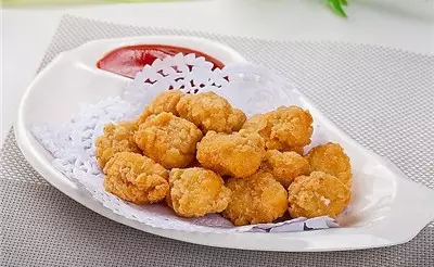 5.腌制好的鸡粒放入面包糠中滚均匀裹满;