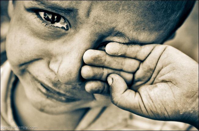 个人(或者说我们几个人,因为我们意见一致)更喜欢第二张,第一张给我的感觉是一个孩子没得到自己想要的玩具,仰起头向大人要玩具,而第二张的眼睛里真是透露出了一种生活的艰辛与无奈,细节表现极其到位,鼻尖的汗,嘴角的汗,眼睛的光亮,皮肤的质感,落下的泪水,我们甚至能够感受到皮肤上面的那一层泥,仅仅通过面部,就刻画出了活着的状态,极具艺术感染力!
