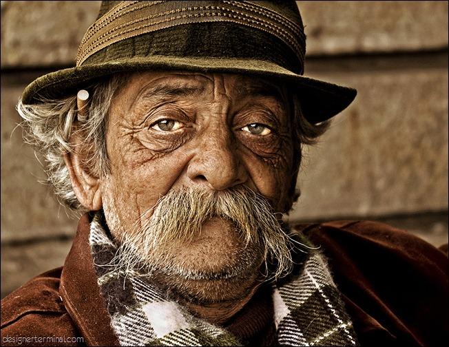 我还是更喜欢第二幅,第一幅还是采用了锐化的手段,出片不接近人眼,这本没有问题,因为锐化有时候的确可以增强感染力(比如胡子的岁月感),但这一幅人像的瑕疵在于眼睛,眼白的过于突出,让整个眼神显得空洞,缺乏神采,却又没有相应的面部表情作为支撑,后期过度导致有死鱼眼的倾向(好吧,可能用词不当,意会即可)。