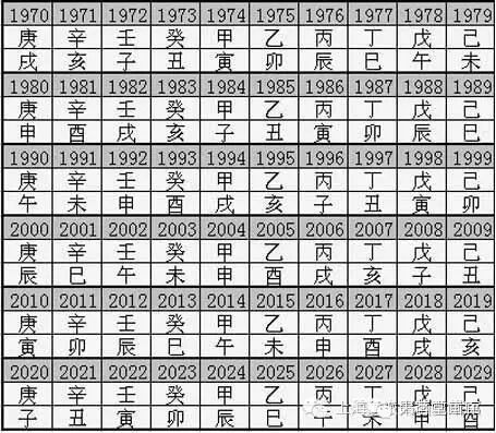 1、甲子,2、乙丑,3、丙寅,4、丁卯,5、戊辰,6、己巳,7、庚午,8、辛未,9、壬申,10、癸酉,11、甲戌,12、乙亥,13、丙子,14、丁丑,15、戊寅,16、己卯,17、庚辰,18、辛巳,19、壬午,20、癸未,21、甲申,22、乙酉, 23、丙戌,24、丁亥,25、戊子,26、己丑,27、庚寅,28、辛卯,29、壬辰,30、癸巳,31、甲午,32、乙未,33、丙申,34、丁酉,35、戊戌,36、己亥,37、庚子,38、辛丑,39、壬寅,40、癸卯,41、甲辰,42、乙巳,43、丙午,44、丁未,45、戊申,46、己酉,47、庚戌,48、辛亥,49、壬子,50、癸丑,51、甲寅,52、乙卯,53、丙辰,54、丁巳,55、戊午,56、巳末,57、庚申,58、辛酉,59、壬戊,60、癸亥