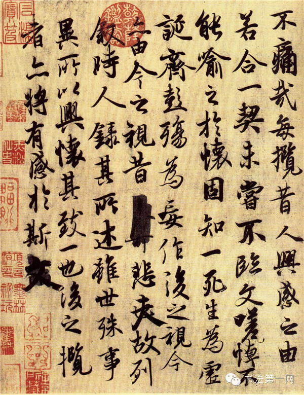 5《兰亭序》黄绢本(褚遂良摹本,领字从山本)