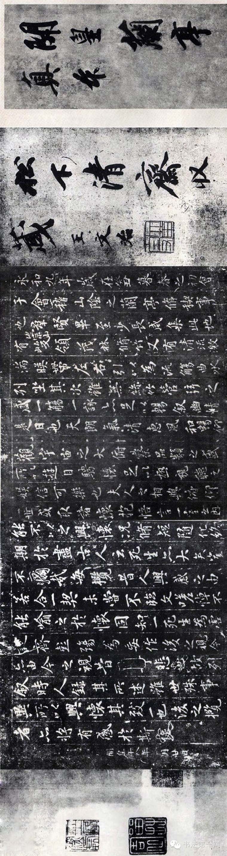 今天所谓的《兰亭序》,除了几种唐摹本外,石刻拓本也极为珍贵。最富有传奇色彩的要数《宋拓定武兰亭序》。不管是摹本,还是拓本,都对研究王羲之有相当的说服力,同时又是研究历代书法的极其珍贵的资料。在中国书法典籍中有关《兰亭序》的资料比比皆是,不胜枚举。