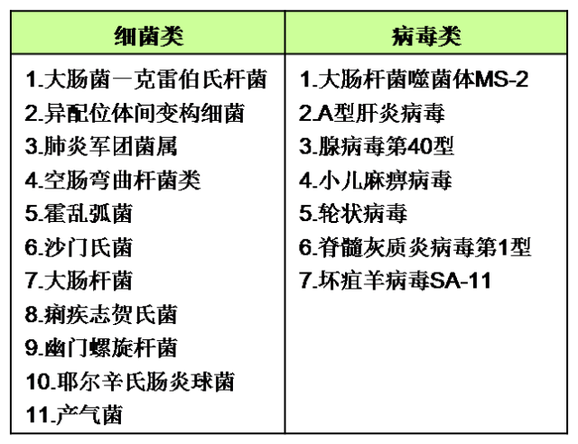 经过权威测试,益之源®净水器能有效杀灭下列水中所含的细菌与病毒:
