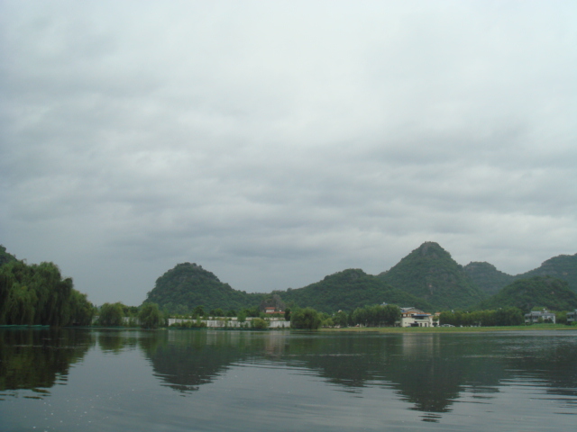 可能是文山州与广西紧邻,普者黑的山水颇有阳朔遇龙河山水的味道,一个个具有喀斯特地貌的小山峰座座相连,如影随行。虽然相似,但也各有特点。都是水路,普者黑的交通工具是舟,遇龙河是竹筏;普者黑因有荷塘,水道时宽时窄小舟平稳划行风平浪静,遇龙河因有堤坝,水道时高时低竹筏冲浪前行惊险刺激。