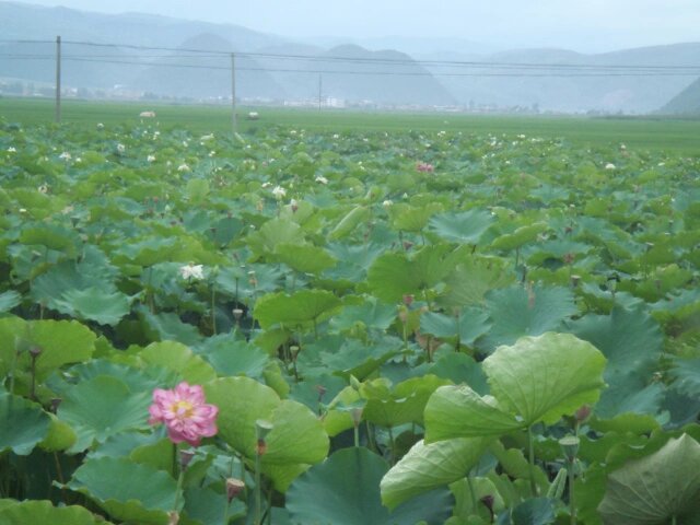 第二天一早,我们一家人坐小中巴前往普者黑景区。快进入景区的时候,路两边大片的荷花塘跳入眼帘,粉色、桃红、白色荷花在翠绿的荷叶映衬下摇曳得格外动人,妩媚的姿态象娇羞的姑娘不得不让人心动,好似小伙在相亲的路上充满了期待,第一眼见面就认定她就是那个心中的她。