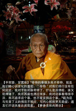 【平常语∙甘露味】我对每个受三皈依的弟子都要嘱托:你皈依的是一切佛、一切法、一切僧,我只是一个代表相。现在有很多人起偏执著,认为皈依这位师父,就不能再皈依别的师父,这是错誤的。讲经说法也如此,不能弘揚这部经时就说这部经好,其它经都不好,这就造了谤法的过失。不能执著於哪一部经,佛在《金刚经》里说:“法尚应舍,何况非法”。我们要明白这个道理,无论大乘、小乘、显宗、密宗都是佛法,皆随众生的根机而宣说,不能自赞毁他互相毁谤,应该彼此赞叹随喜。【夢參老和尚開示】