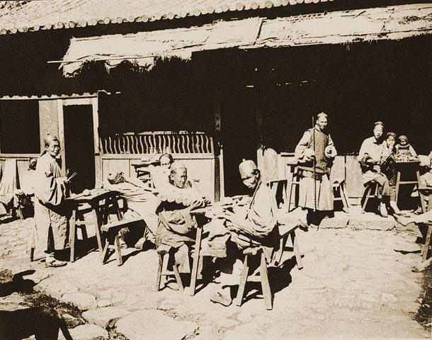 流浪孩子组成的杂耍班在表演龙头的造型 北京 1902