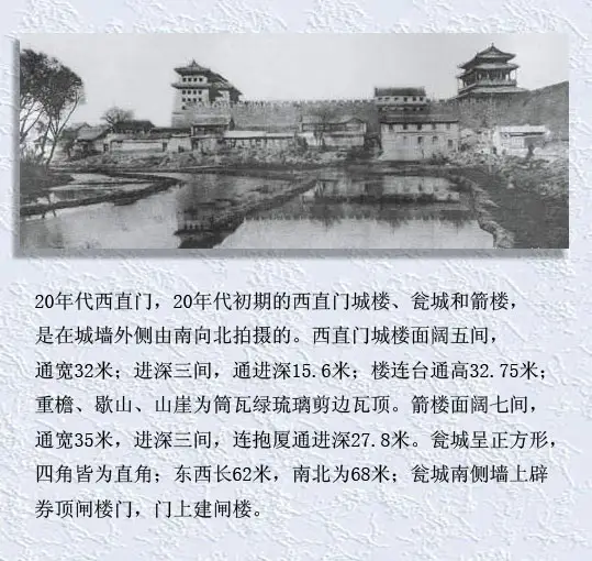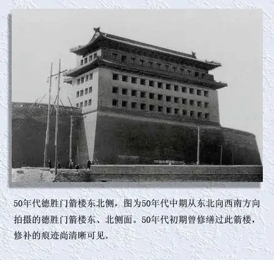 现在除正阳门、德胜门、和后来重建的永定门其余已都不复存在。其中部分城门还留有儿时那衰败城垣的记忆。
