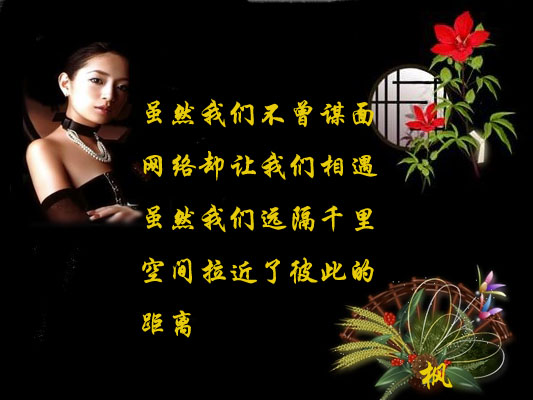 我们相识于网络,每个人都以为是虚幻的世界,但恰恰就是这个虚幻的世界,是我们相识的缘,虽然相隔千山万水.虽然素未谋面,但你我已在彼此的记忆里生存……祝远方的朋友笑口常开 !