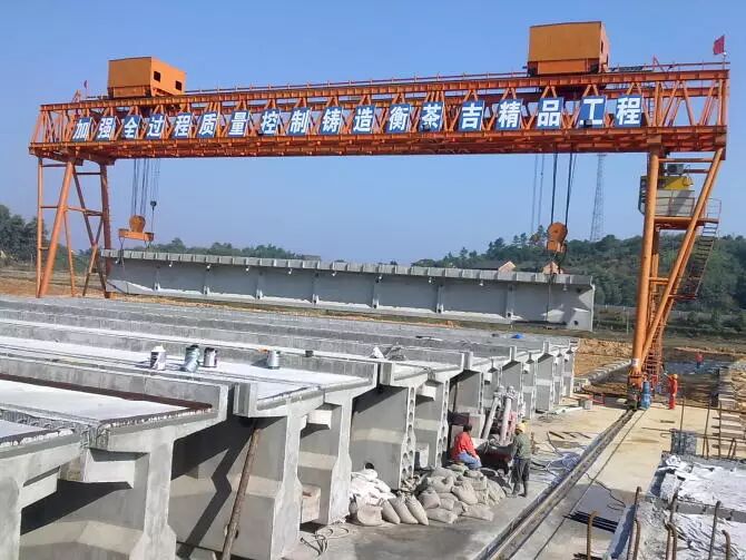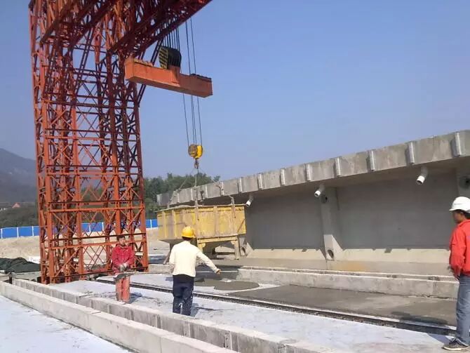 22.梁生产完成后。有龙门吊吊至成品区。然后再运至需要架梁的地方。