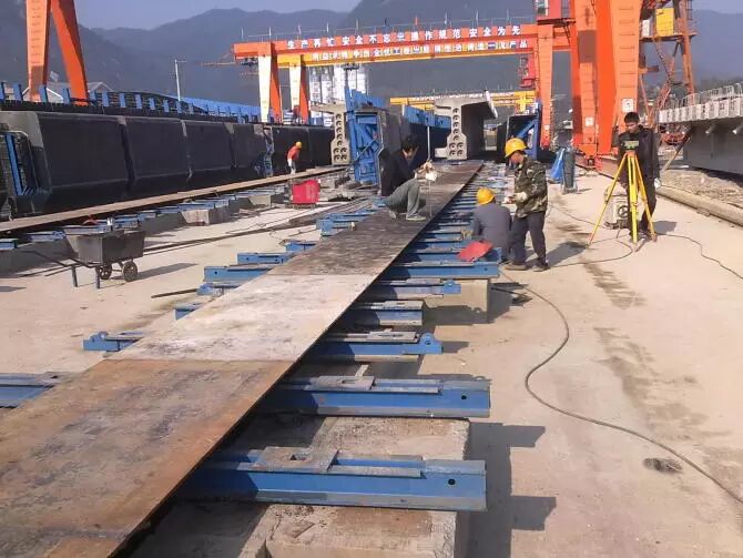 1.底模安装。图为技术人员在测量反拱。反拱的作用主要为减少预应力产生的上供度。