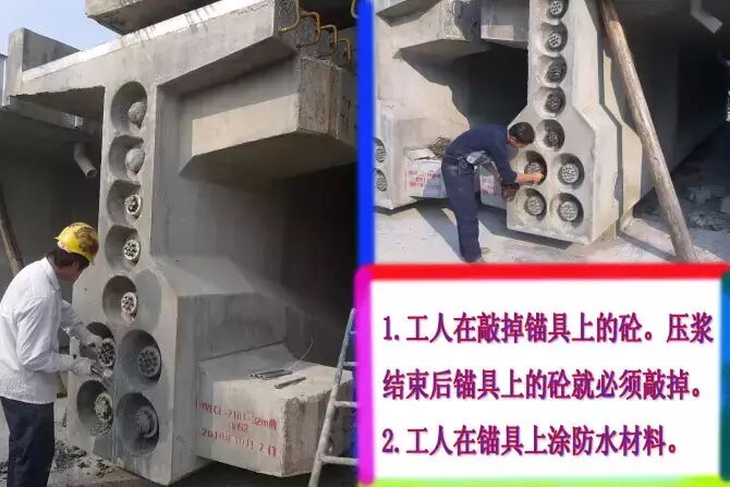 16.封端之前的准备。封端之前须铲除锚具上的砼。然后对锚具做防锈防水处理。