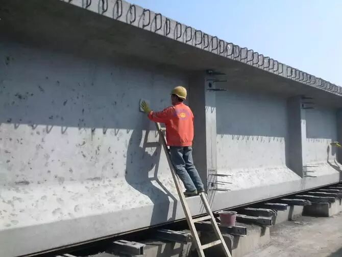 11.梁体美容。因为模板的表面并不是完全光滑的,拆模后,表面会留下一些小坑。须用水泥浆填补。