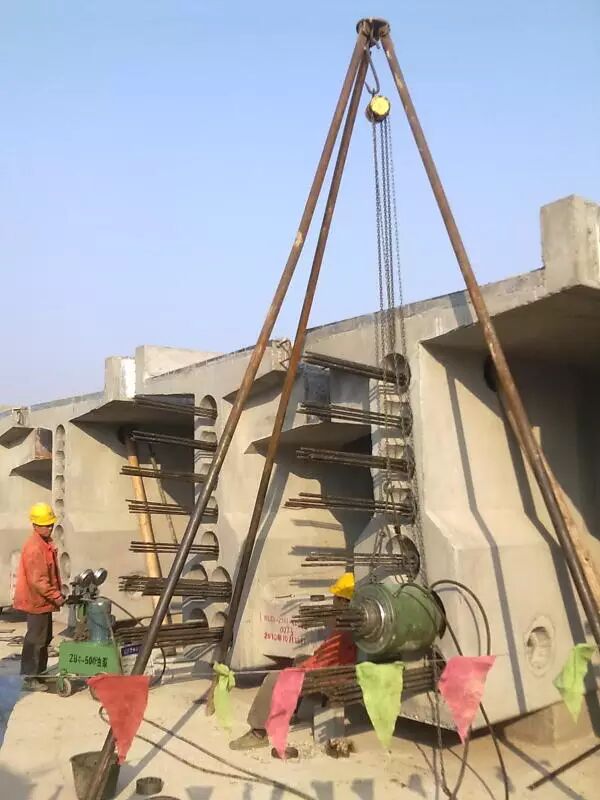 9.拔橡胶管。当混凝土强度达到6到8Mpa时,经过实验室允许后即可拔管。