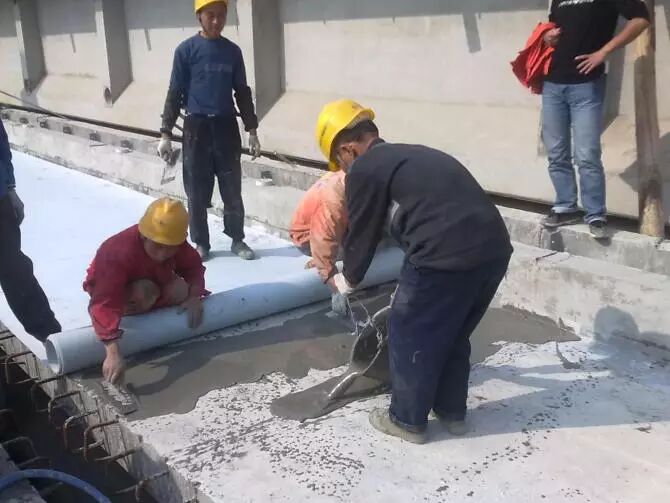 20.保护层施工。防水层施工完毕24小时后,方可进行保护层施工。保护层是保护防水层的。为了使防水层不被破坏,保持良好的防水特性,保护层所用的混凝土是具有较高强度的玻纤增强混凝土。