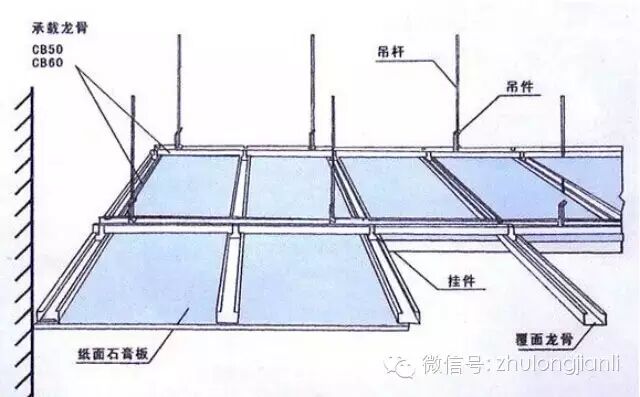 4、吊杆、龙骨的材质、规格、安装间距及连接方式应符合设计要求。金属吊杆、龙骨应经过表面防腐处理;木吊杆、龙骨应进行防腐、防火处理。