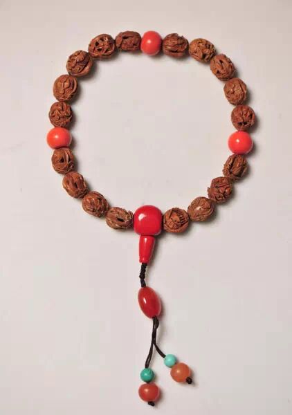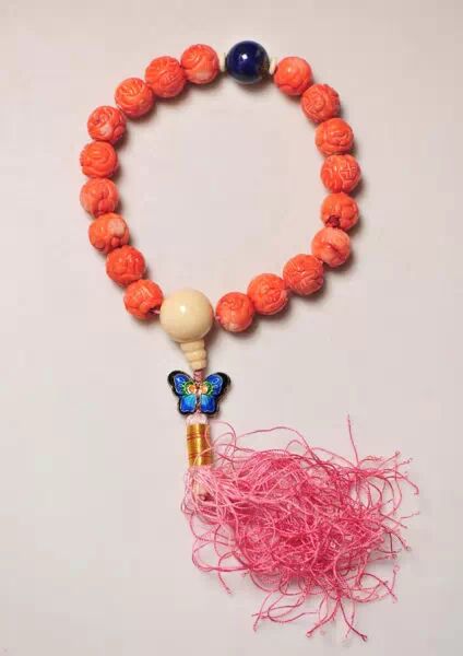 古时十八子手串多采用珊瑚、翡翠、玛瑙、碧玺、蜜蜡、水晶、绿松石等名贵材质制成,色泽艳丽、雕工精湛,富贵无比,不仅富有装饰效果又便于携带,因此是宫廷富贵人家非常喜欢佩戴的装饰物,也是礼佛之人比较推崇的计数佩戴之物。
