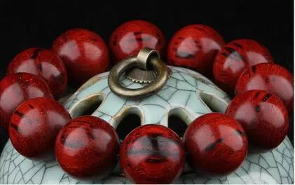 但火焰纹是天然的纹理,可以说,每一丝都是不同的。所以火焰纹的多少以及火焰的分布决定了一串鸡血红火焰纹紫檀手串的完美程度。因为火焰纹紫檀99%都是空心的,所以耗材特别多,一般取材率只有30%~40%所以成本也是特别高昂的。通常厂家害怕制作火焰纹手串,就是担心其裂的地方很多,影响了出材率导致亏本。