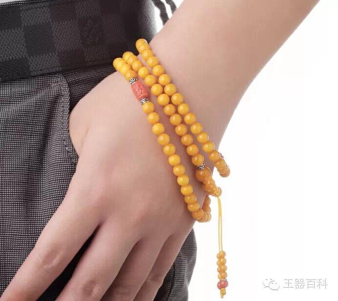按照藏传佛教的说法,蜜蜡是极有灵性的宝物,是佛教七宝之一,借助它灵修,功效倍增,藏传佛教很喜欢用它做佛珠,认为蜜蜡通灵的效果很强。