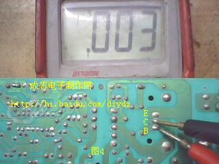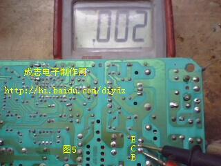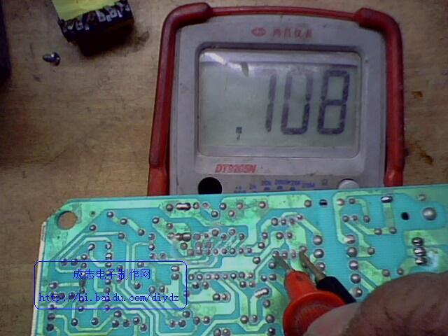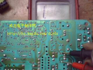 接着检查两只大功率三极管.一般使用的是13007,常见的还有C2625,13009等.测量时一般测量它的两个PN结的好坏,基本上就可以测量出它的好坏,图示已击穿,正常数值在0.5-0.8之间.