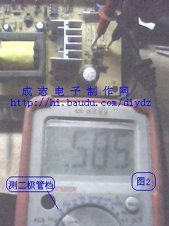 检查两只高效率整流二极管是否击穿损坏,图示数值正常,击穿显示为 .0XX
