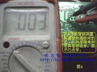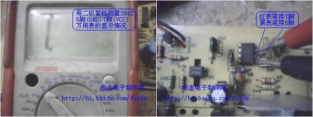 由于取样电阻及驱动电阻都未损坏和3842的测量,从这步其本可以判断3842未损坏。如果前两者损坏,3842可以说99.9%损坏。如最后一图的情况。
