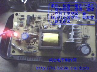 更换掉损坏的元件,换上新元件,通电测试,充电器正常指示,经测量参数正常,这样这个充电器就修好了.