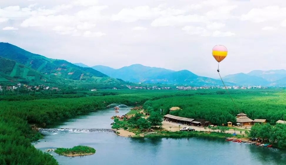 杭州双溪竹海位于浙江省杭州西北30多公里处的余杭区双溪镇,这里遍地竹林,苍翠欲滴,竹回路转,清凉逼人。 双溪竹海漂流,可以洗手濯足,冲飘过坝,有惊无险;在这里,你可以乘老牛车乡村怀古,坐大篷车观赏竹海,若有兴趣,还可以在露天嬉水区游泳,在千步滩休闲区休息,在沙滩排球场打球,在娱乐区踩水车,荡秋千等游览活动。