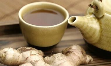 咽喉肿痛:在热姜水中加入少许的食盐,当茶饮用。