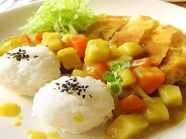 3,把洗干净的米倒进电饭锅和炒好的东西一起搅拌均匀。加水,没过全部食材大概一个食指节。然后把咖喱块扔进去。按正常的煮饭程序煮倒保温搞起来吃就行了。