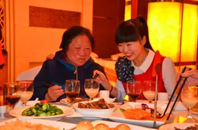 8.给父母端饭。