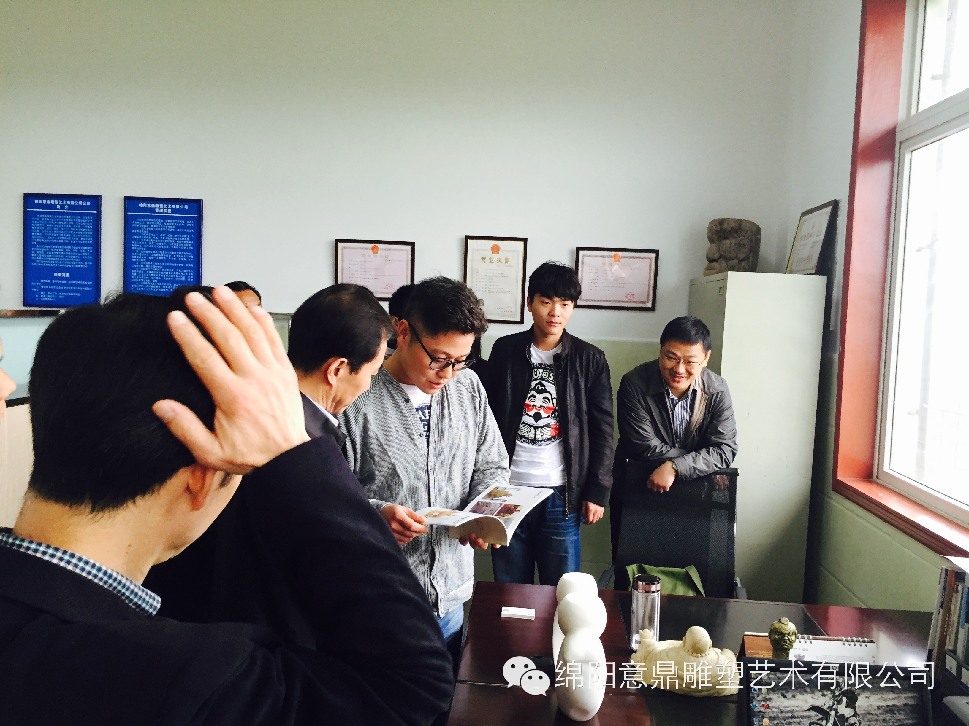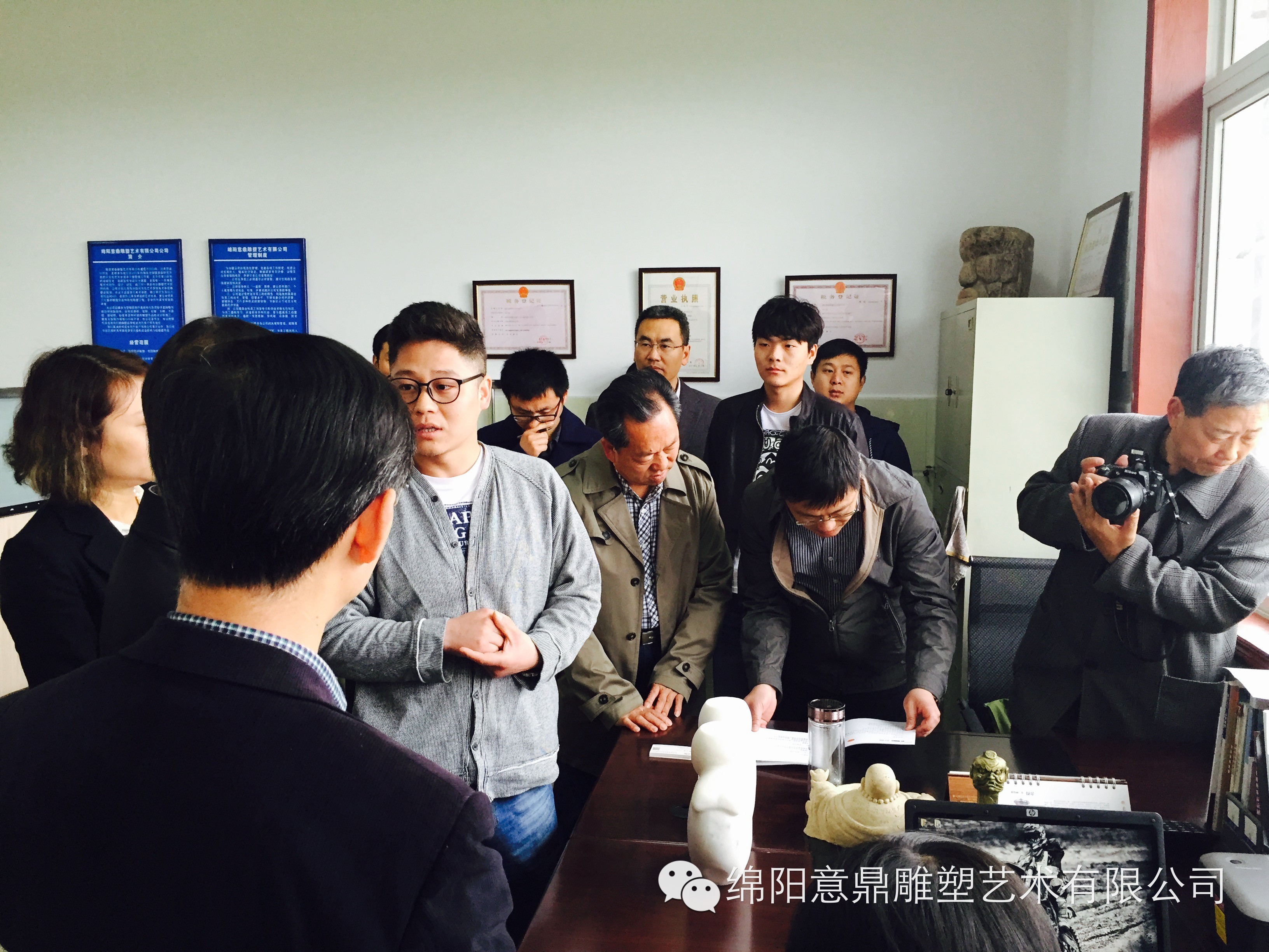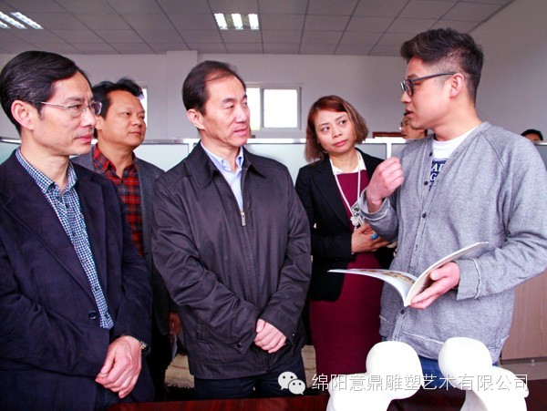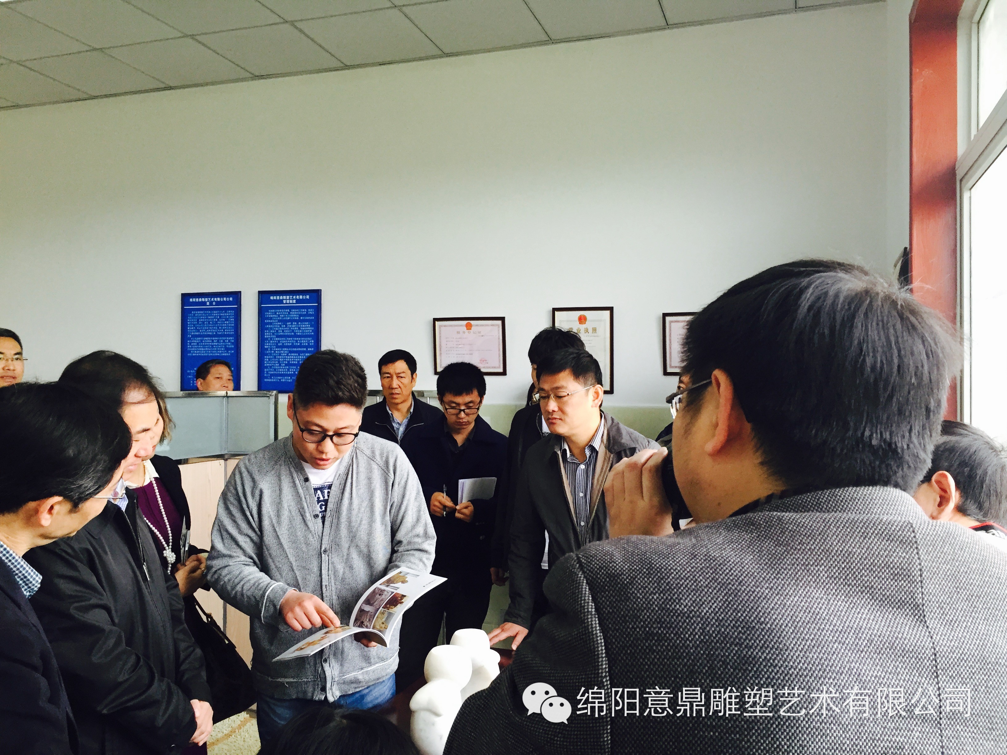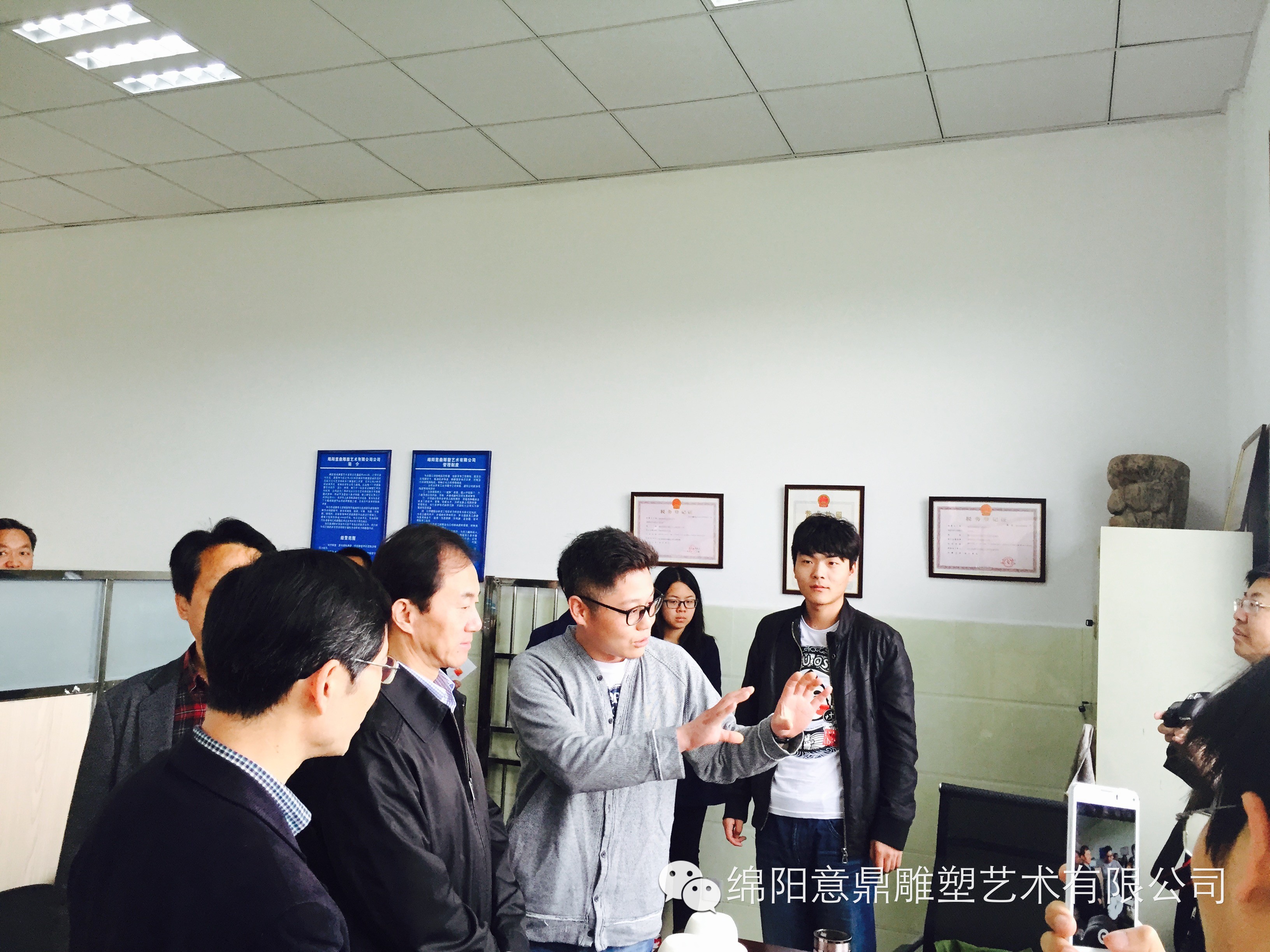 2015年3月27日,四川省政协副主席、四川省工商联主席陈放一行来到绵阳意鼎雕塑艺术有限公司考察调研,陪同调研的还有省相关单位、绵阳市党委、政府相关领导和四川文化艺术学院领导。公司总经理党江波负责接待。