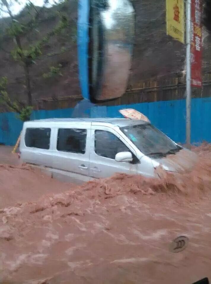 看到这张图片了吗,貌似是救护车哦,估计里面人的脚脚都泡在水里了