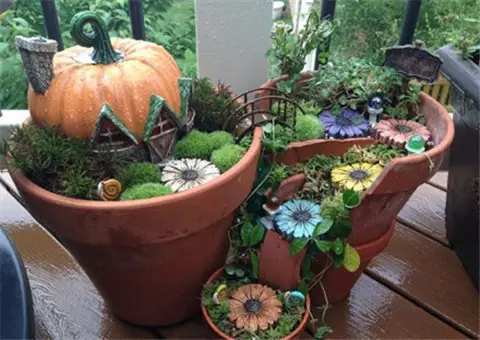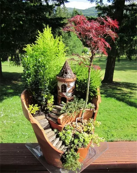 还可以用砖片做出楼梯的感觉,在小小花盆里玩过家家!动手能力强的小伙伴一定心动了吧~
