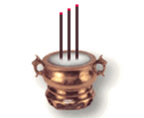上香时,用双手的食指和中指夹住香,用拇指顶着香脚,使它保持平衡,再恭恭敬敬的举起,放在两眉的中间,香不能翘上,也不能垂下来,要让它跟脸的角度成为90度的比例。
