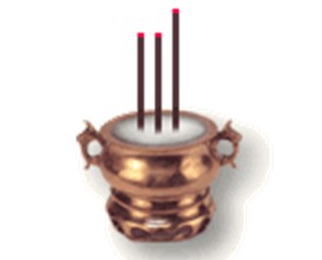 我看了看他的香,最左边的香比较长,中间与右边的香略短一些,几乎一样齐(见上图);再看我的香,中间最长,左边略低,右边最低(见下图)。
