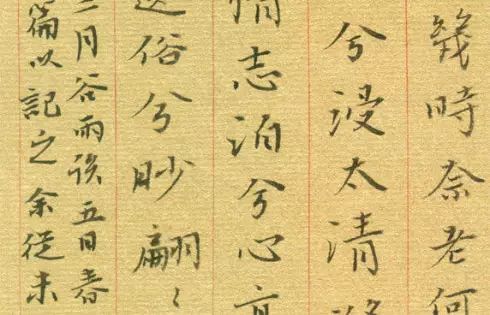 另一个是字外的连贯。通过上下字的大小、奇正、虚实、疏密等变化来增加整行的流动性。看魏晋或明清的小楷,经常运用上缩下伸,上奇下正等方法来进行变化,因字赋形,因时适变,达到行云流水般的灵动。包世臣《艺舟双楫》曰:“古帖字体,大小颇有相径庭者,如老翁携幼孙行,长短参差,而情意真挚,痛痒相关。”就是一种变化中求和谐,于错落中求流贯的效果。