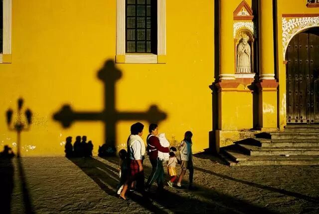 在恰帕斯这片饱受压迫与反抗的土地上,十字架的影子落在一个教会家庭身上。摄影:托马什·托马谢夫斯基