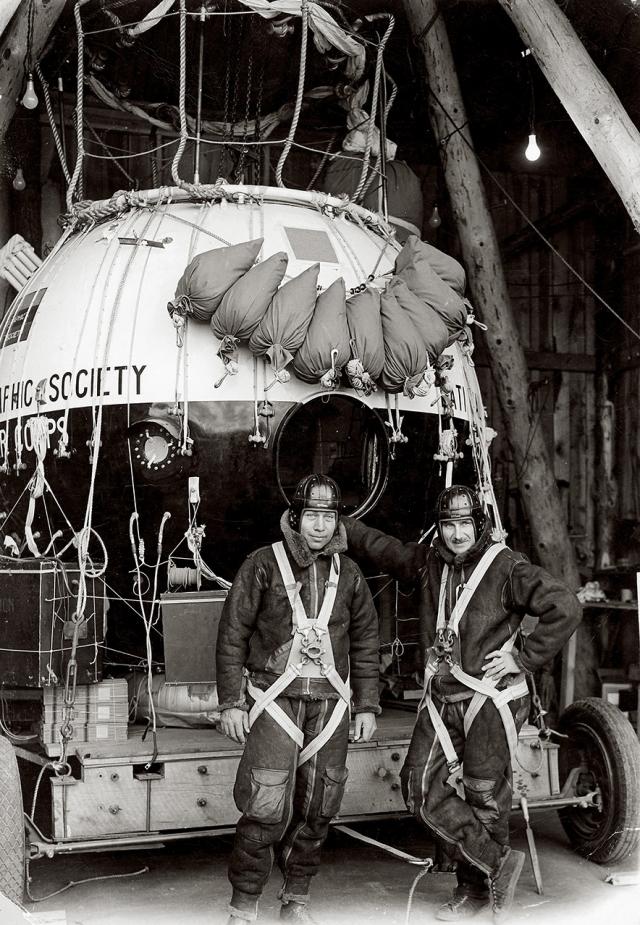 艾伯特·W.斯蒂文斯上尉(右)和奥维尔·A.安德森上尉,于1935年同乘全球最大的气球直达同温层,创造了世界纪录。摄影:理查德·H.斯图尔特