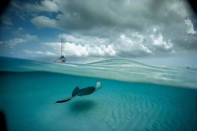 大开曼岛北海峡,海水清亮如晴空,一只魟鱼扇动着两鳍。戴维·杜比莱